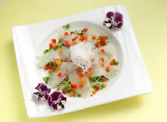 「うま塩」ドレッシングで 発売前のモニターに当選して試させていただきました。一番に魚介に使いたいと思ったので、鯛の刺身でカルパッチョ風のサラダに使用。貝割れ大根の上に刺身とオレンジ色と赤色のパプリカを散らしました。本当に美味しくて凄くお勧めの1本です。