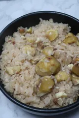 栗ご飯 がんばって栗をむいて作りました、栗ご飯♪これを食べると秋を感じます。「