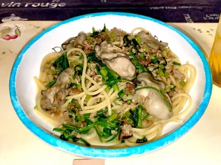 牡蠣と豚バラ肉と春菊のパスタ