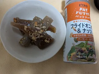 牛蒡とこんにゃくの煮物に80day 【80日目】甘辛く炊いた牛蒡とこんにゃくの煮物にはナッツパットフッテです🤭