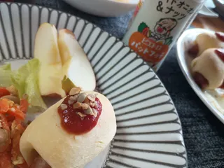 39日目、パンのトッピングに! 手作りウインナーロールにケチャップとパットフッテをトッピングして食べました!