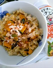 炊き込みごはん 【62日目】 かぼちゃと塩昆布の炊き込みごはん味変でパットフッテを