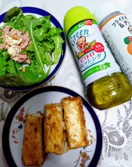 ライスペーパー61 【61日目】 ライスペーパーで厚揚げとチーズとパットフッテを巻いてシーチキンにパットフッテを