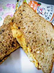 まぁ🌝❕上手〜✨ 黄身の固まり具合も良い感じ❣️ ナッツフッテと絡めて😋 オンザライスしてある😆👍✨
