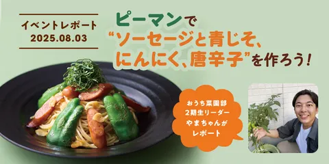 みなさま、こんにちは!ピエトロホームタウン副町長の“やまちゃん”こと横山です。 本日は8月3日に開催した「ピーマンで “ソーセージと青じそ、にんにく、唐辛子” を作ろう!」オンラインイベントの様子をレポートします! イベントには25名の方にご参加いただきました! 当日の