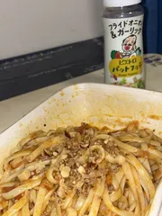 冷凍パスタに♪ 【72日目】リングイネのボロネーゼに♪パスタにかけるパットフッテはフライドオニオン&ガーリックが本当によく合います︎︎👍🏻︎︎✨️