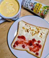 パットフッテ76日目 【76日目】朝食にウインナー珈琲+パンにフルーツジャムとガーリックパットフッテ少しリッチな気分✨