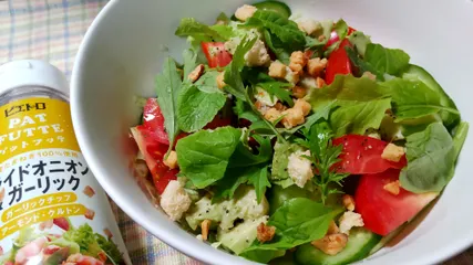自宅で収穫したベビーリーフに ベビーリーフが食べ頃になったので収穫してサラダにしました(*^^*)