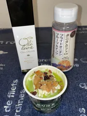 抹茶アイスに…ホワイトチョコ、オリーブオイル、パットフッテ最強説✨️✨ 【66日目】抹茶アイスに…デコペンホワイト、オリーブオイル、パットフッテのフライドオニオンフルーツ&ナッツをかけました♪ デコペンでかけたホワイトチョコレートはパリッパリな食感になってました✨️高級なオリーブオイルがとても香りが強くホワイトチョコの味わいより際立ってましたがやっ