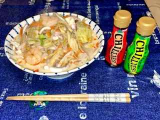 久々にちゃんぽんが食べたくなって鶏がらスープの素やオイスターソース醤油、すりおろし生姜などを…牛乳と水で混ぜ合わせたスープで作りました✨️炒め油には、ピエトロのガーリックオイルを使用して具材も炒めて…合わせたスープ&麺で煮込んで器に盛り付けていただきました✨️私は最初から投入しましたが…ちゃんぽんに
