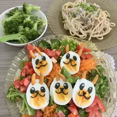イースターごはん🐰🐣 お昼ごはんにうさぎ🐰のサラダ🥗と、ポルチーニ茸のクリームパスタを作りました♪ 時間がなくて雑なうさぎさんになってしまいましたが、子どもたちは喜んでくれたので良かったです😅 ブラジル🇧🇷のイースターは、チョコ!チョコ!チョコ🍫!お店にたくさんのチョコレートが並びます。色んな種類の卵