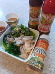 冷しゃぶしゃぶ パットフッテチャレンジ11日目 【11日目】サラダにパットフッテ、ピエトロドレッシング焙煎香りごまとうめを少しアレンジしてつけダレにして豚しゃぶしゃぶしました☺️