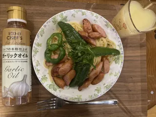 ソーニン 今日は結婚記念日。先月参加した「ピーマンで“ソーセージと青じそ、にんにく、唐辛子”を作ろう!オンライン料理教室」 て教えてもらった“ソーニン”を作りました!「ピエトロCHEF'S ガーリックオイル」を使ったので、より簡単に美味しくできました!