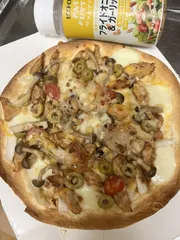 パットフッテチャレンジ82日目 【82日目】おとなピザの仕上げにパットフッテ 昨夜のおつまみの残り〝オリーブ〟〝キノコの塩漬け〟〝チキン〟〝トマト〟〝モッツァレラチーズ〟なんでも乗せました✨ これが最高に美味しかったです♡