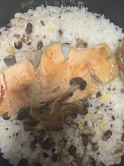 秋鮭炊き込みご飯 秋鮭を焼き炊き込みご飯を新米で炊いてみました