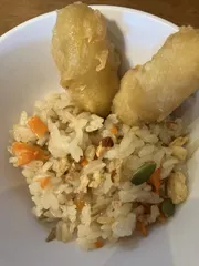かしわごはん 【54日目】三瀬どりを使いかしわごはんを炊きました。ごぼうの天ぷら