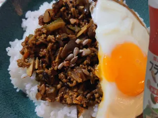 キーマには目玉焼きも欠かせませんね( ˶'꒳'˵ )💕︎おいしそぉ