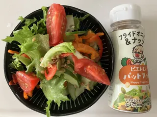 キャロットラペ パットフッテチャレンジ17日目 【17日目】キャロットラペにパットフッテフライドオニオン&ナッツをふりふりしました