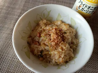 昨日の残りご飯をリゾットに。パットフッテでとっても美味しくなりました!見た目が茶色ですね…スライスチーズ1枚入れてチーズカレーリゾットです😋