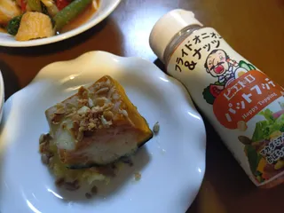 【46日目】チーズかぼちゃにパットフッテ 【46日目】冷凍カボチャにチーズをのせてレンチン後に振りかけました😊