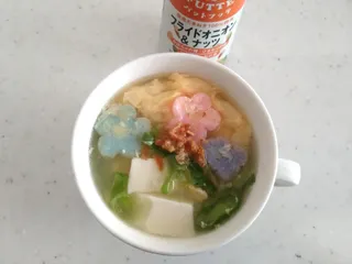 41日目スープ 【41日目】 卵スープにパットフッテをかけて頂きましたオニオンがいいアクセントです~