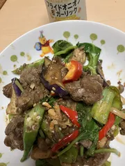 牛肉、茄子味噌辛炒め 【48日目】家庭菜園野菜と牛肉を味噌と豆板醤と醤油で味付けしました