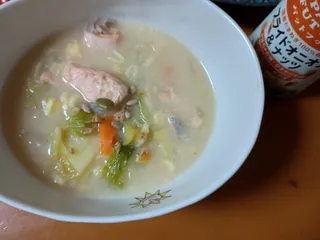 17日目 鮭のシチューにパットフッテをトッピング!美味しさ増して、家族みんな今日も追いがけです。(昨日食べてるので)