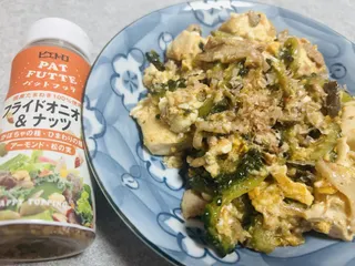 ゴーヤチャンプルーに❣️ 【44日目】ワンランク上のゴーヤチャンプルー出来上がりました( ー̀֊ー́ )︎︎︎︎✌︎✨️