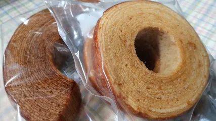 訳ありなのでお安く購入できました(*^^*) お隣の街にバームクーヘンを作っている会社があるので切れ端などお安く購入できました。心置きなくたくさん食べちゃうぞ~~😋