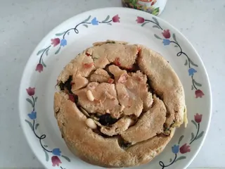 【32日目】 ねぎと小エビをたっぷりはさんだねぎ餅にパットフッテをかけて頂きました
