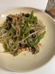 パットフッテ 23日目 青椒肉絲にふってみました〜かさましにもやしを入れすぎました青椒肉絲に見えない(^◇^;)