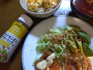 【55日目】サラダにパットフッテ 【55日目】美味しくいただきました😊ドレッシングはレモン&ナッツアボカドには焙煎香りごまドレッシング