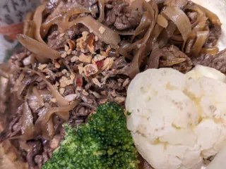 牛肉生姜炒め、ブロッコリー、カリフラワー