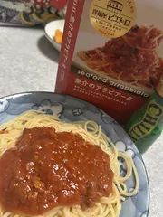 魚介のアラビアータに❣️ 【82➕48日目】今日は、ピエトロさんのお誕生日🎉おめでとうございま〜す⸜🙌⸝ 🟩チリーズ多めに、フリフリ♪♪してお祝いしま〜す🤣