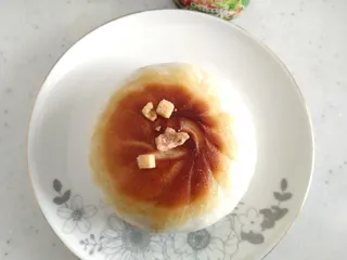 【100日目】 両面をバターでカリッと焼いた肉まんにガーリックのパットフッテをかけていただきました カリッともちっとした食感にガーリックパットフッテがおいしかったです
