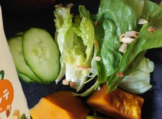 グリーンサラダ…って思ったらかぼちゃも発見🤩…我が家の冷蔵庫のかぼちゃ思い出しました⸜🙌⸝ありがとうございま〜す。明日使わなくちゃ💪✨😆 明日は…えいとさん✨️✨️✨️🥂🌟100日目ですね(*^^)vすご〜い