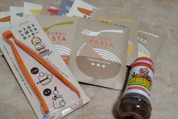 届きました!たくさんのメッセージも🥰カッターのピエトロおじさんが、めちゃめちゃかわいい🥰紅ズワイのクリームソースがとても楽しみです。そして、レトルトパウチに使えるカッター😄 おみくじも😆