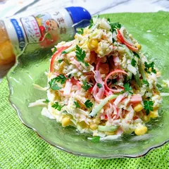コールスローにうま塩ドレッシングを使いました。他の調味料は、マヨネーズ、塩胡椒、白ワインビネガー、砂糖です。美味しくできました🤗