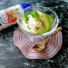 クリーミーでとろけるような生ゆばにコクのあるアボカド。そこにうま塩ドレッシングをかけて。めっちゃ美味しかった💕