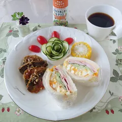 8日目 【8日目】お昼にボリュームサンドのワンプレートを作りました😋あじのハニーポン酢ソテーにパットフッテをかけました💓
