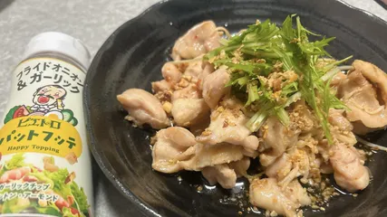 ごま醤油ガーリックは、万能すぎる笑焼きそばに使っても美味しすぎました!お肉は、鶏ハツです