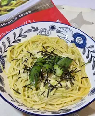 青じそ香る 梅と蒸し鶏の和風スパゲティ🍝