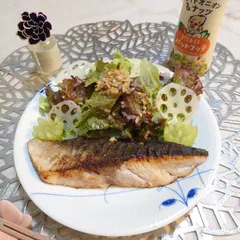 鰤のムニエルとサラダのワンプレート 【31日目】サラダにパットフッテをかけました。