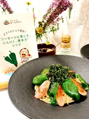 オンライン料理教室のパスタ オンライン料理教室で教えて頂いた「ピーマン、ソーセージと青じそ、にんにく、唐辛子のパスタを作りました😋ソーセージを自家製ベーコンにかえて💓ペペロンチーノソースに、和風調味料を加えることで、しっかりと味が付いてとっても美味しいパスタになりました😋✨ ピエトロスタッフ様へ素敵なイベントに参加さ