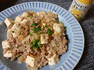 29日目 塩そぼろ豆腐にパットフッテ! 塩そぼろ豆腐にフライドオニオンガーリックをinしました!パットフッテのガーリックチップやアーモンド、クルトンの食感がとっても良かったです!美味しさ増し増しです😊