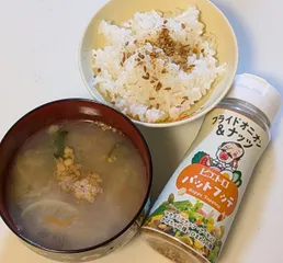 【 82日目+60日 】ご飯とお味噌汁にパットフッテいつものご飯です