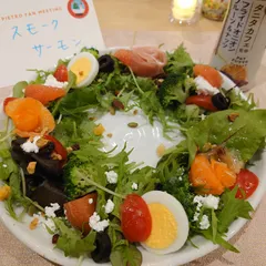 リースサラダに✨ 【64日目】「ピエトロレストラン総料理長による特別料理教室In東京」で、リースサラダを作りパットフッテをかけました😋 楽しく作って美味しく頂きました((o(´∀`)o))ワクワク