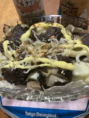 生椎茸のボイルやき 【50日目】生椎茸を1日乾燥させて、キャベツをしき、生椎茸はおうちパスタ醤油ガーリック🧄をまぶして3分焼き、椎茸を裏返しチーズ、マヨネーズ、シラスをのせ2分焼きました。