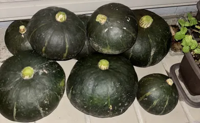 NEW かぼちゃ収穫しました 先日、かぼちゃの詰め放題が収穫祭で開催されていて。200円でオマケしてくれ8玉、連れ帰りましたが、 お家でも沢山。葉っぱが枯れて無くなったモノから収穫。まだ実ってるのが沢山ありますが、これ全部…食べた、かぼちゃの種から🎃発芽したんですよね。まだ食べてませんが、食べた種から育ったかぼちゃは美