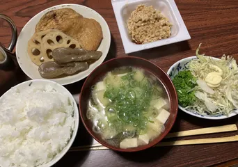 ザ、和食★焼きそば ザ和食が最近大好きです╰(*´︶`*)╯♡ちなみにひきわり納豆とお味噌汁の組み合わせにもハマっています!焼きそばはモチモチで良く出来上がりました〜